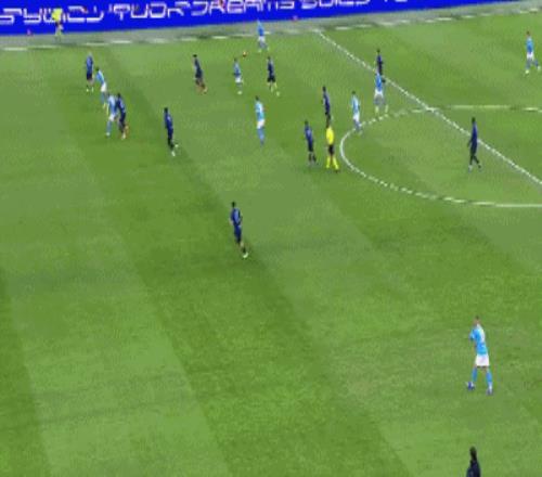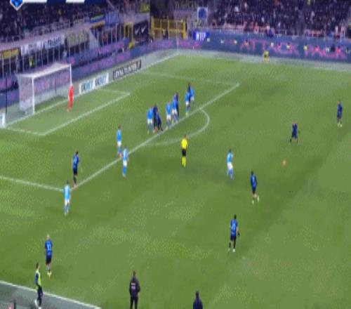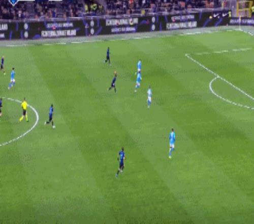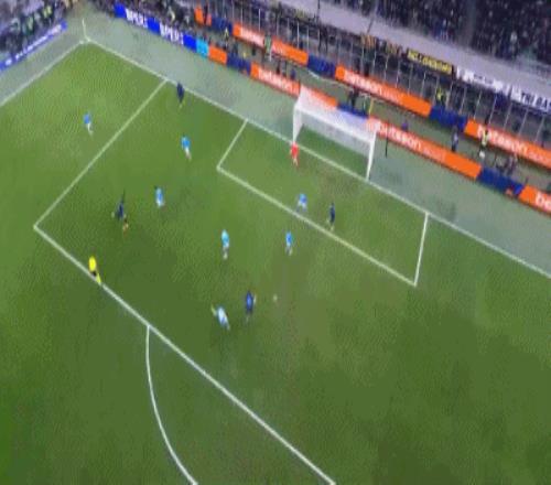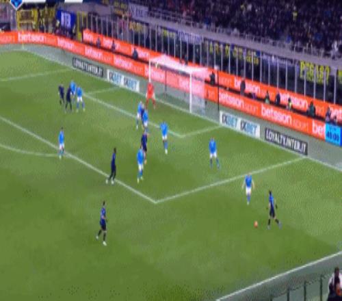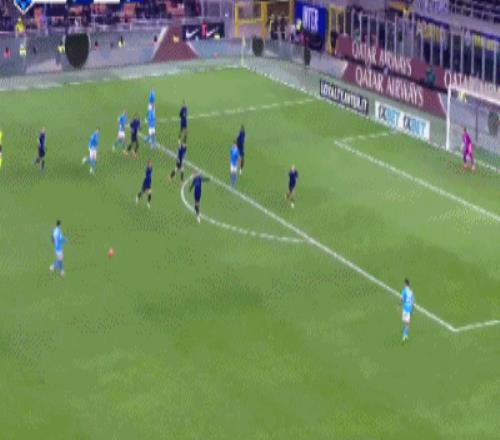 第9分钟,图拉姆助攻,迪马尔科小角度抽射远角破门,国米1-0那不勒斯